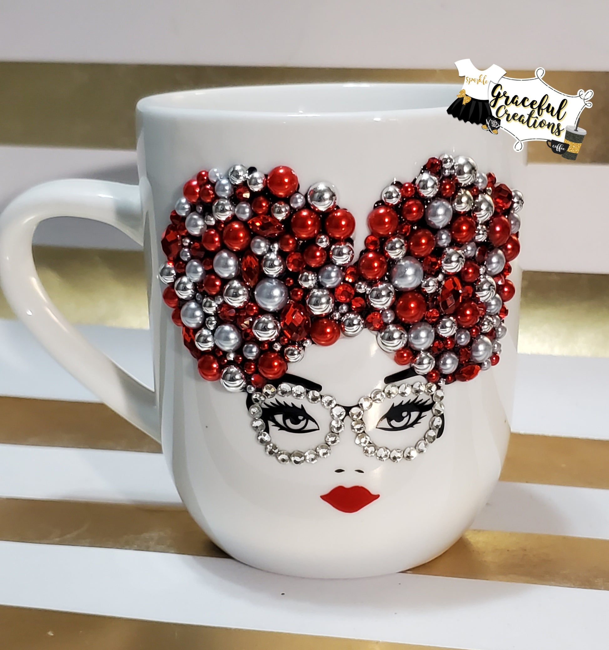 Our Afro Lady Bling Coffee Mug is made with a 12 ounce ceramic coffee and glass and resin rhinestones. The color and placement of stones may vary. Not dishwasher or microwave safe.