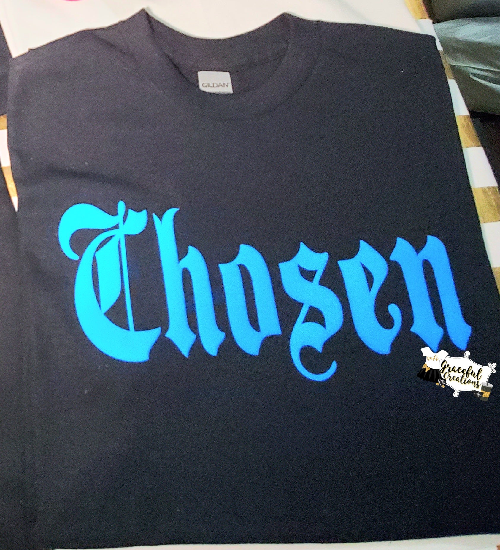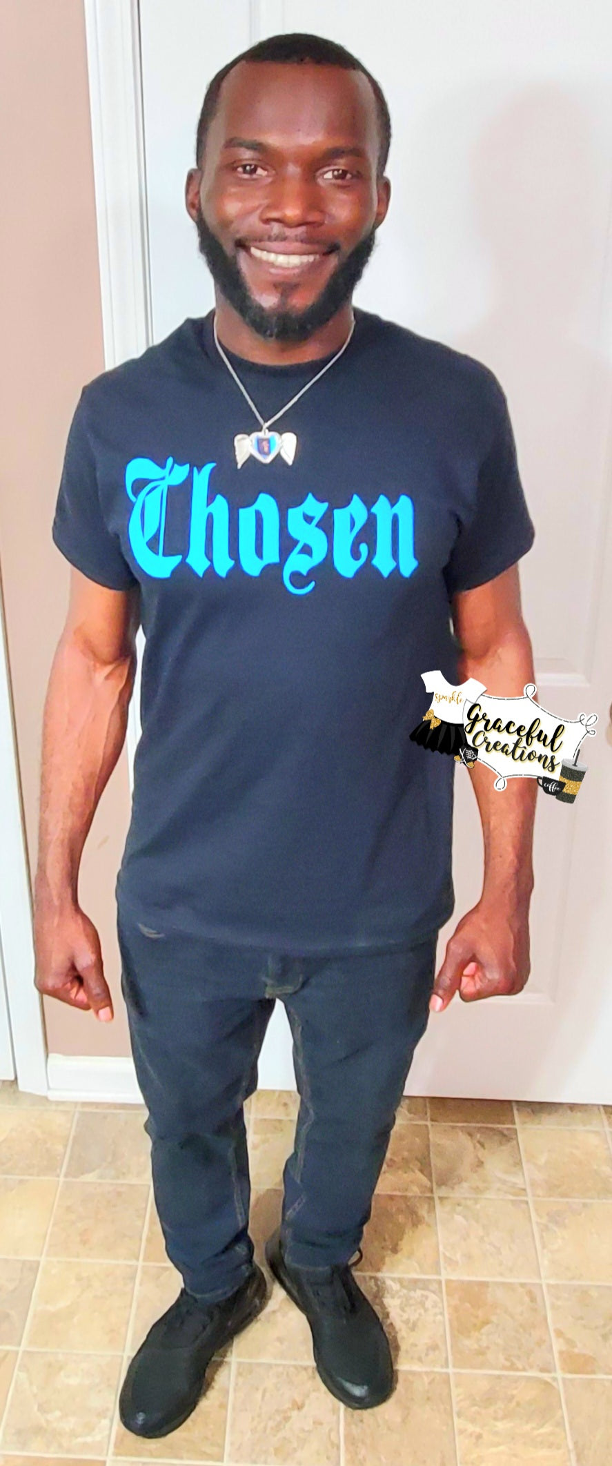 Chosen - Matthew 22:14 Custom Shirt. (This listing is for one Chosen Tee shirt.) When placing your order, please specify in the Customize It/Notes section: 1. Your size (We use unisex tees.) 2. Shirt color 3. Design color choice. All shirts are made to order by myself and my team.