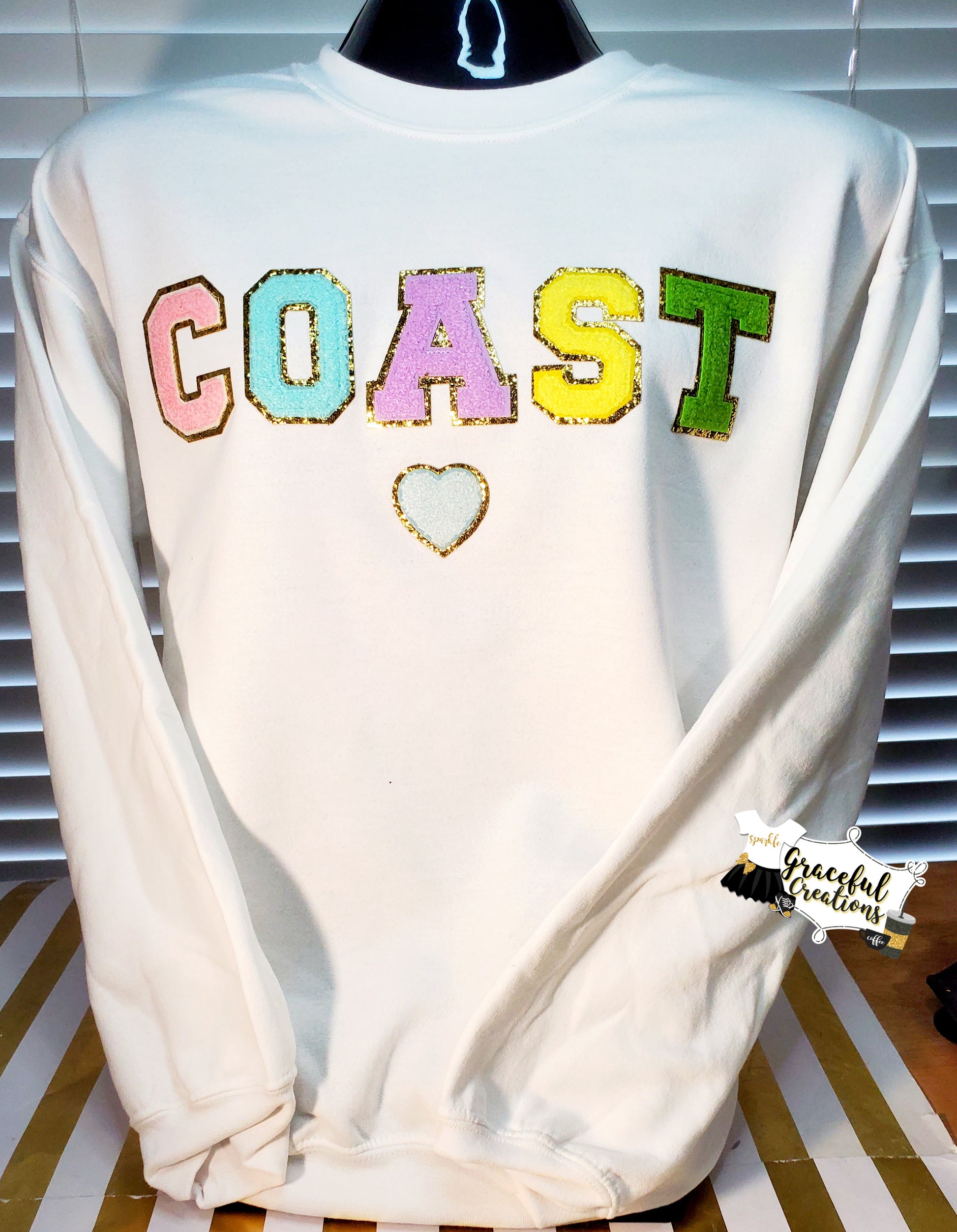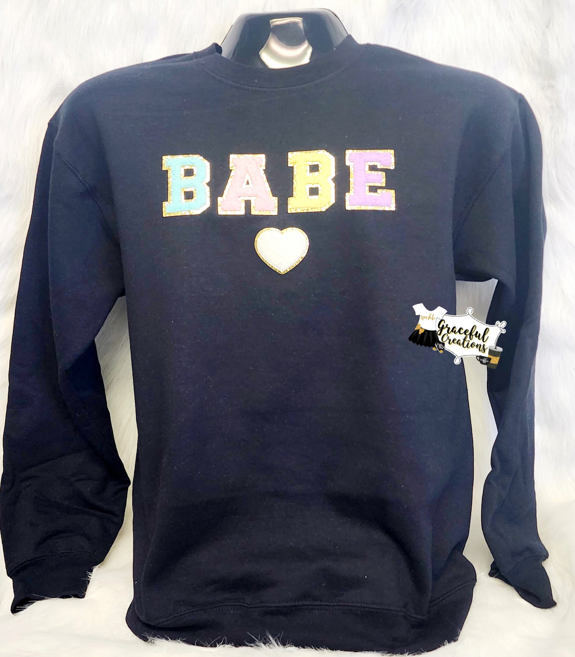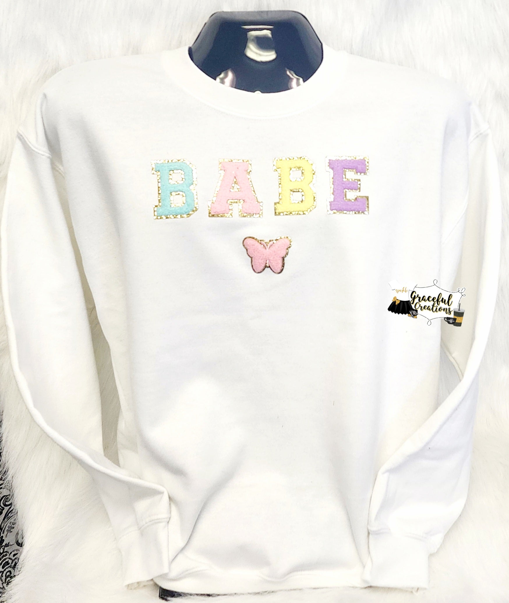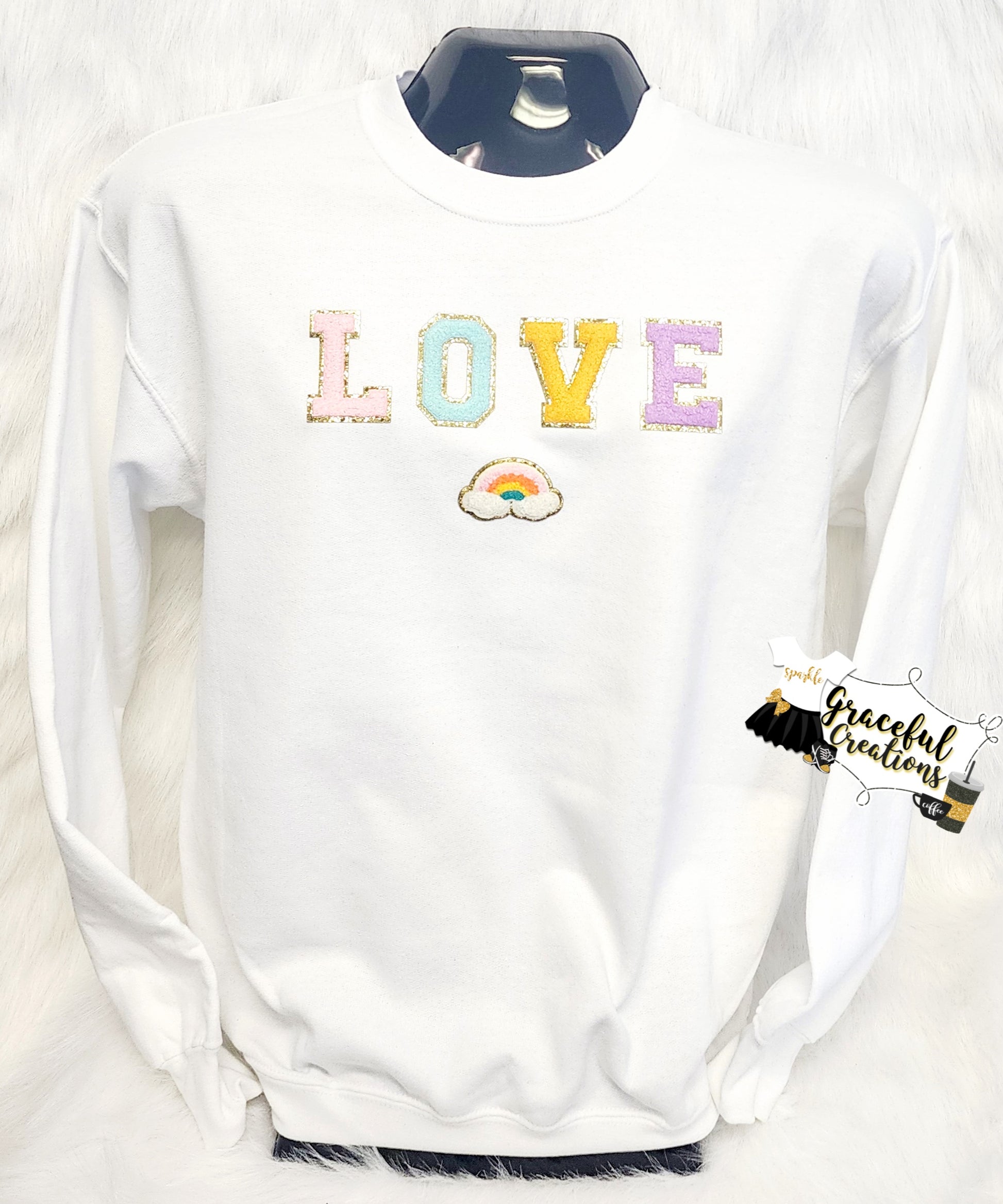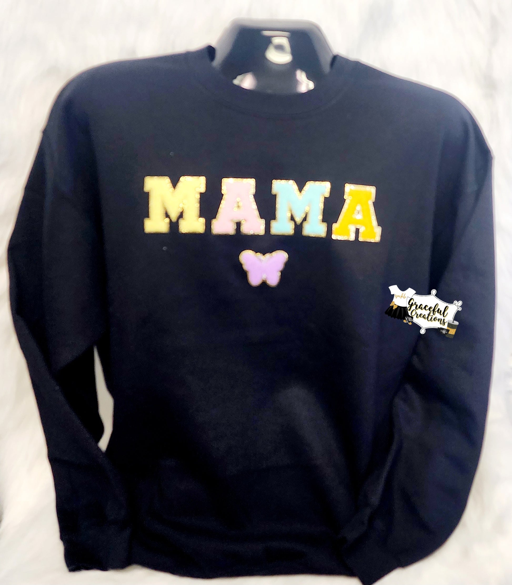 (This listing is for one Chenille Letters Sweatshirt.) All shirts are made to order by myself and my team. Please leave your choice of Shirt coIor and design style.