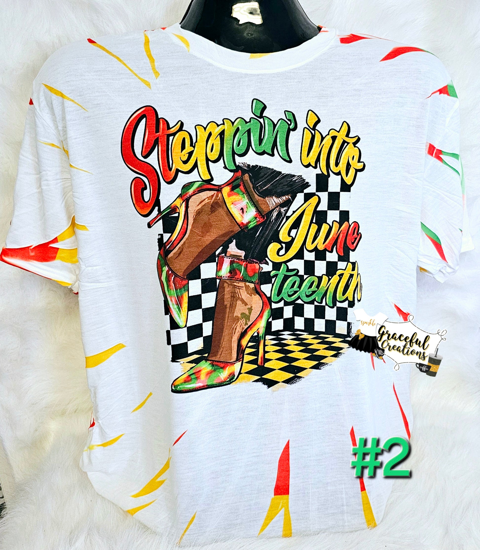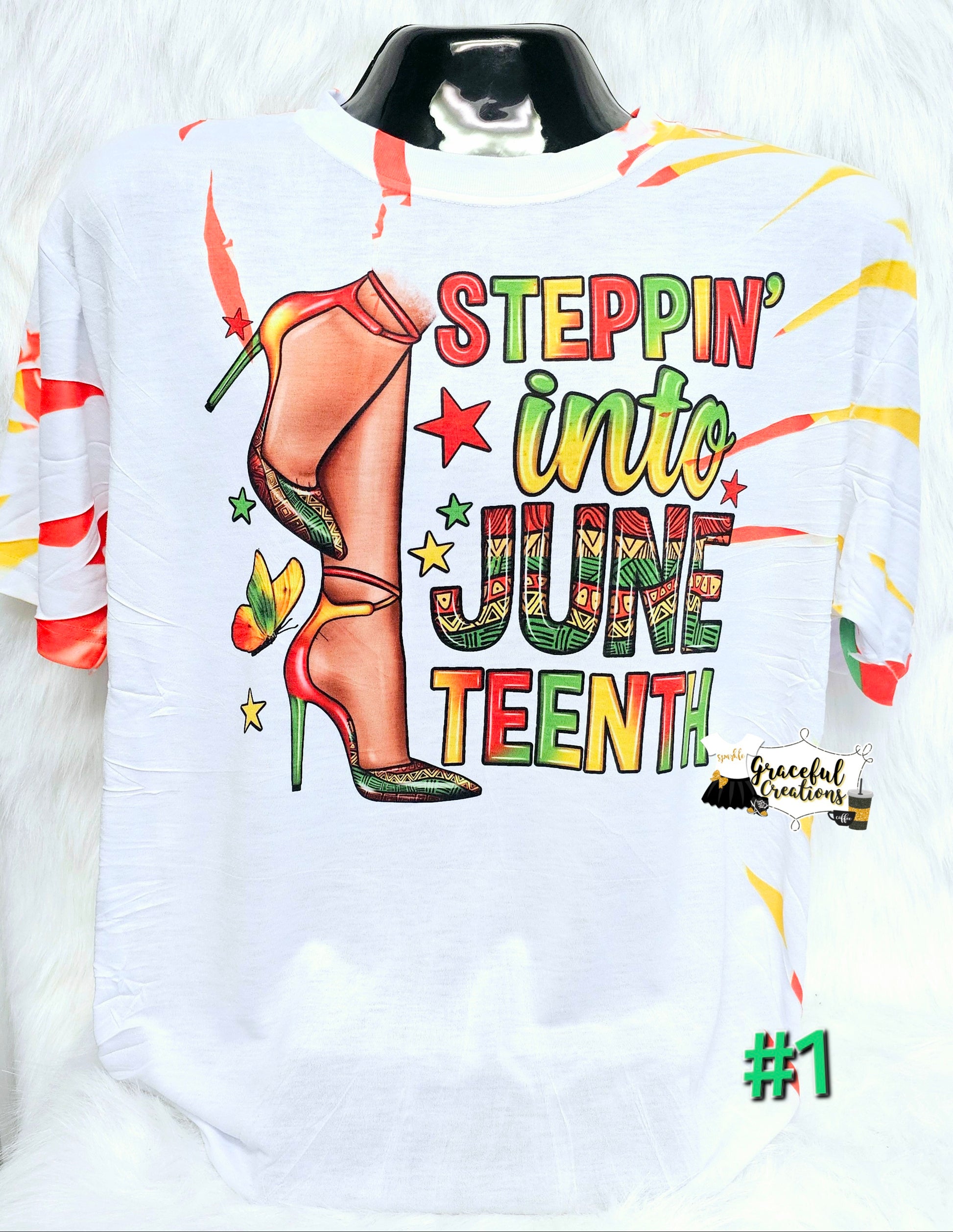 (This listing is for one Scrunch Tiedye Stepping into Juneteenth Lady in Heels Custom T-Shirt.) All shirts are made to order by myself and my team.