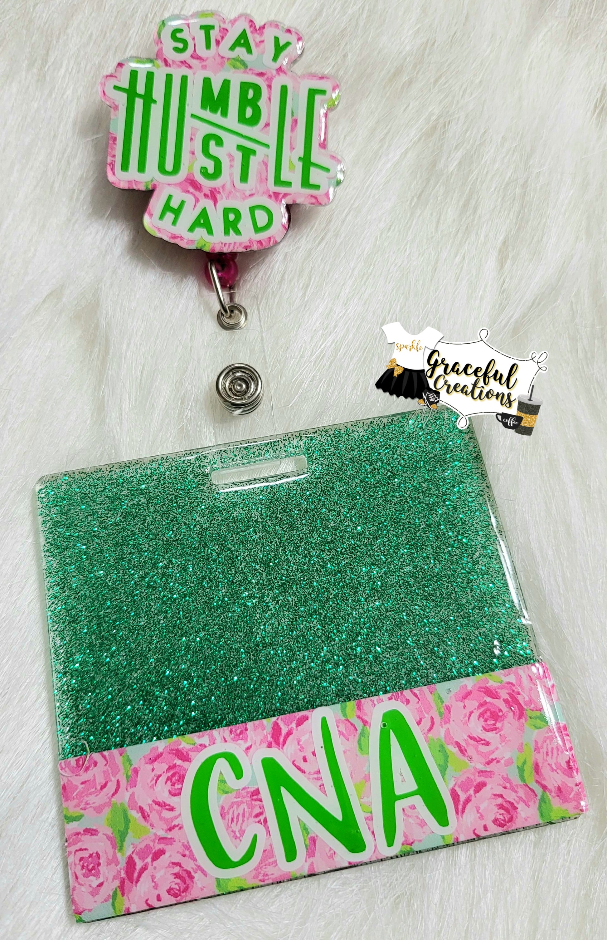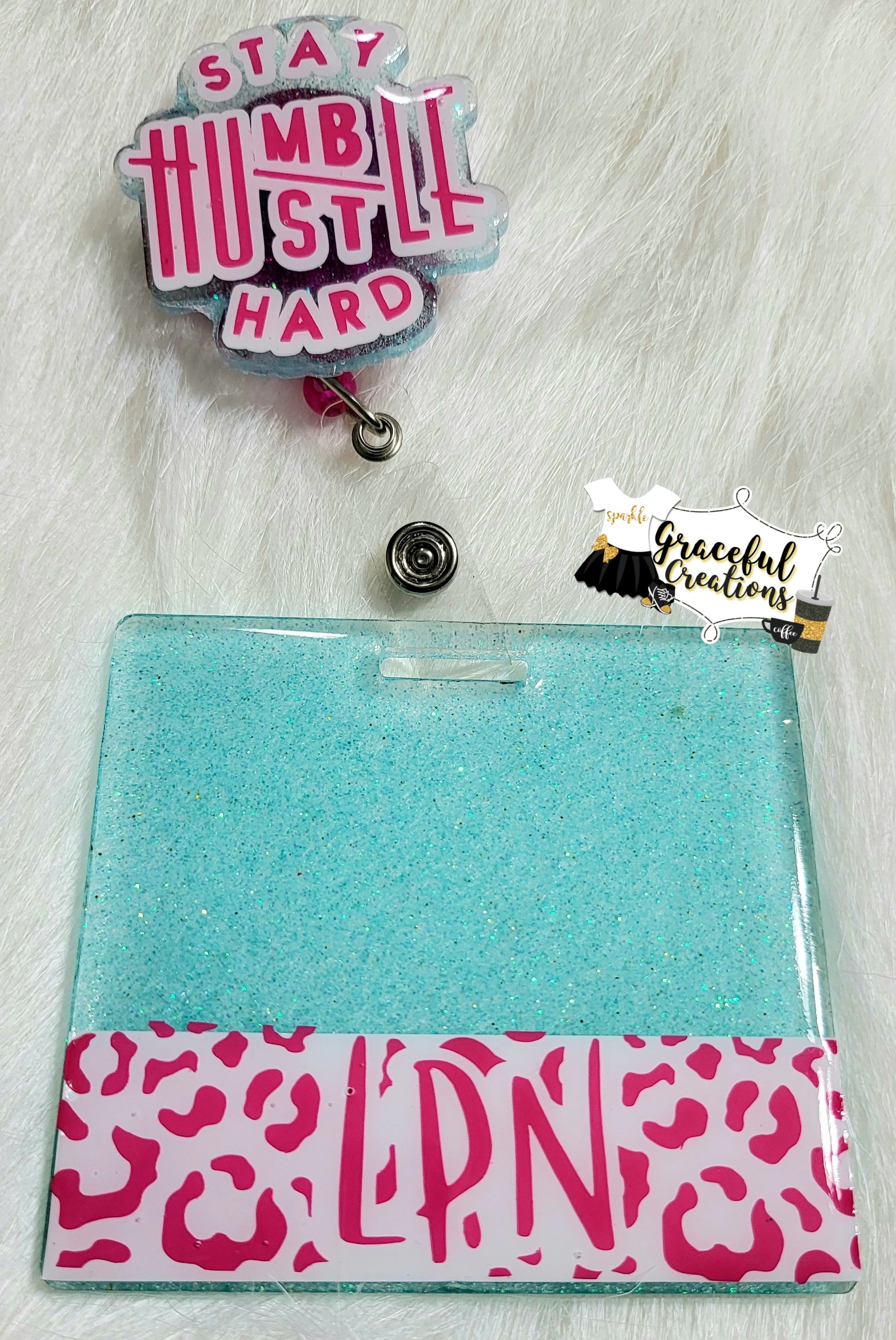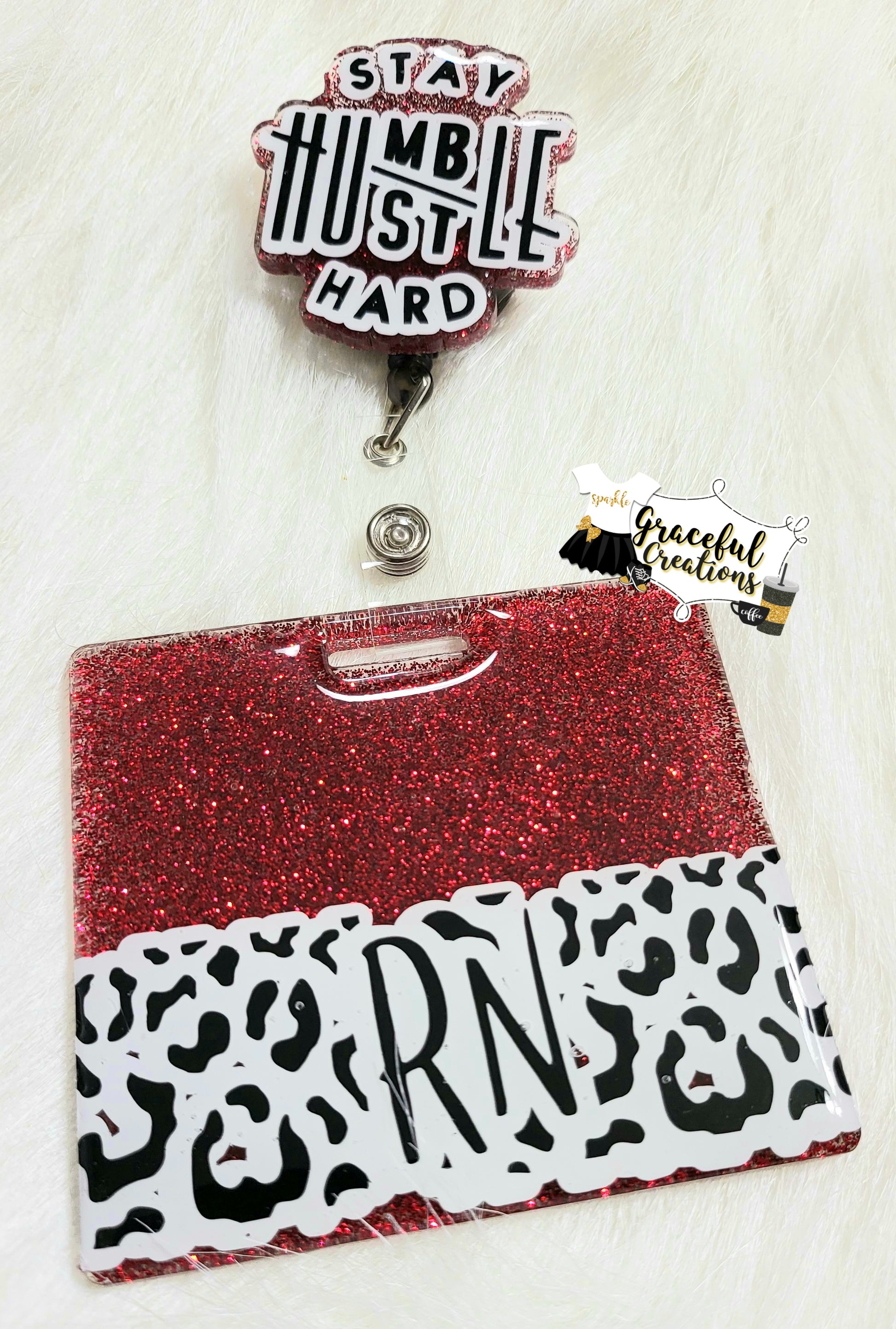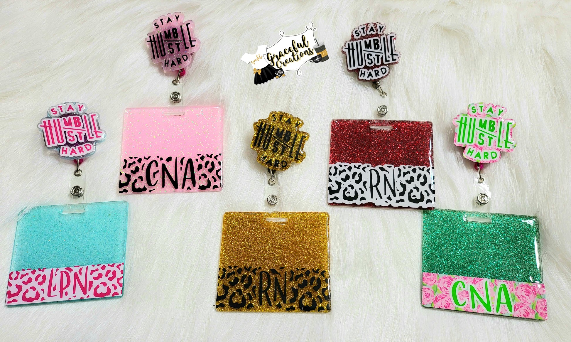 Add some bling to your scrubs with these glittered badge reels and badge buddies! Available in 2 sizes. Shown in the example photo is the horizontal in the standard size of 3.4x3.1.