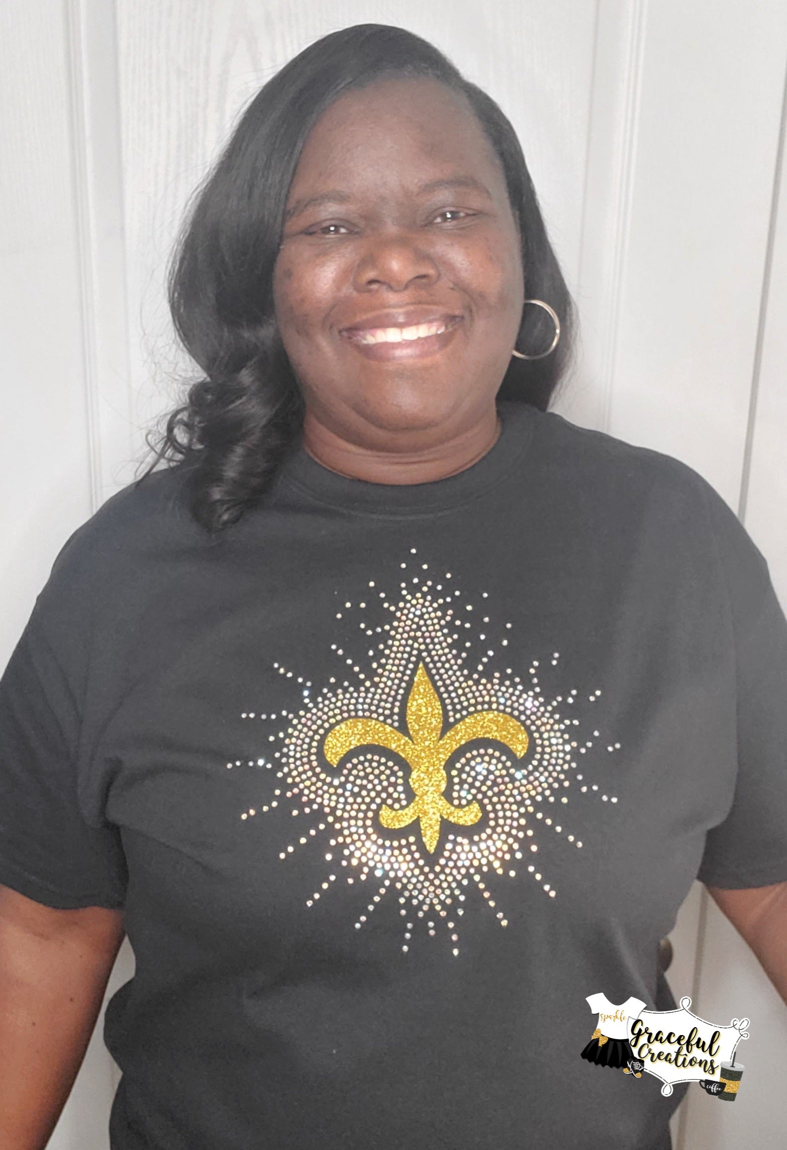 Fleur De Lis Scattered Rhinestone Custom Shirt. Who Dat!!!