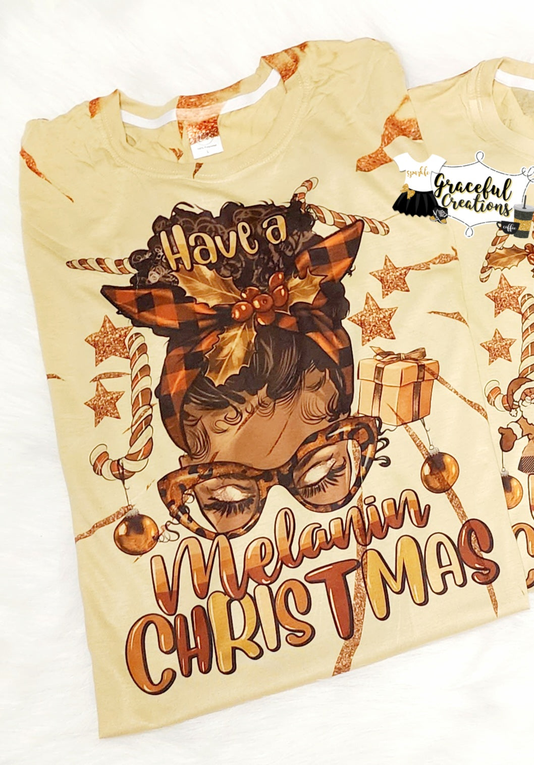 (This listing is for one Have A Melanin Christmas Scrunch Tie Dye Custom Tee shirt.) We use 100% polyester unisex crew neck shirts. All shirts are made to order by myself and my team.