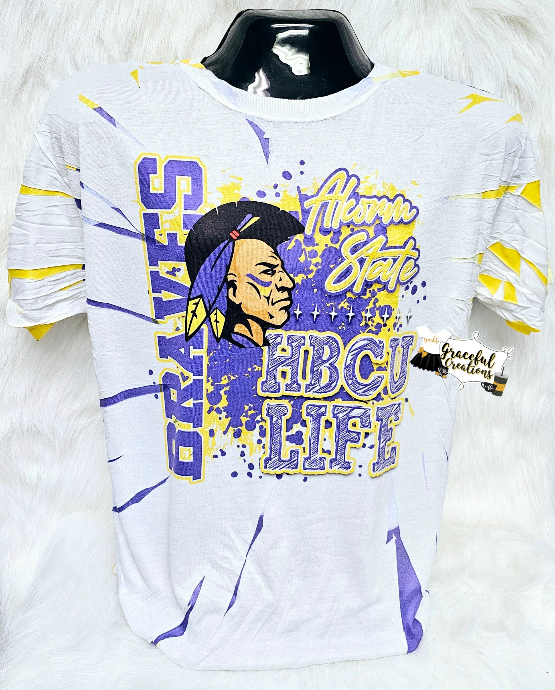 Show off your 🗣️ HBCU pride in style with this 🤩 HBCU Life Scrunch Tiedye T-shirt! Made with premium printing and sublimation, this shirt is perfect for football games, homecomings, or just a regular everyday wear to boldly 🗣️ represent the HBCU Life! 🤩