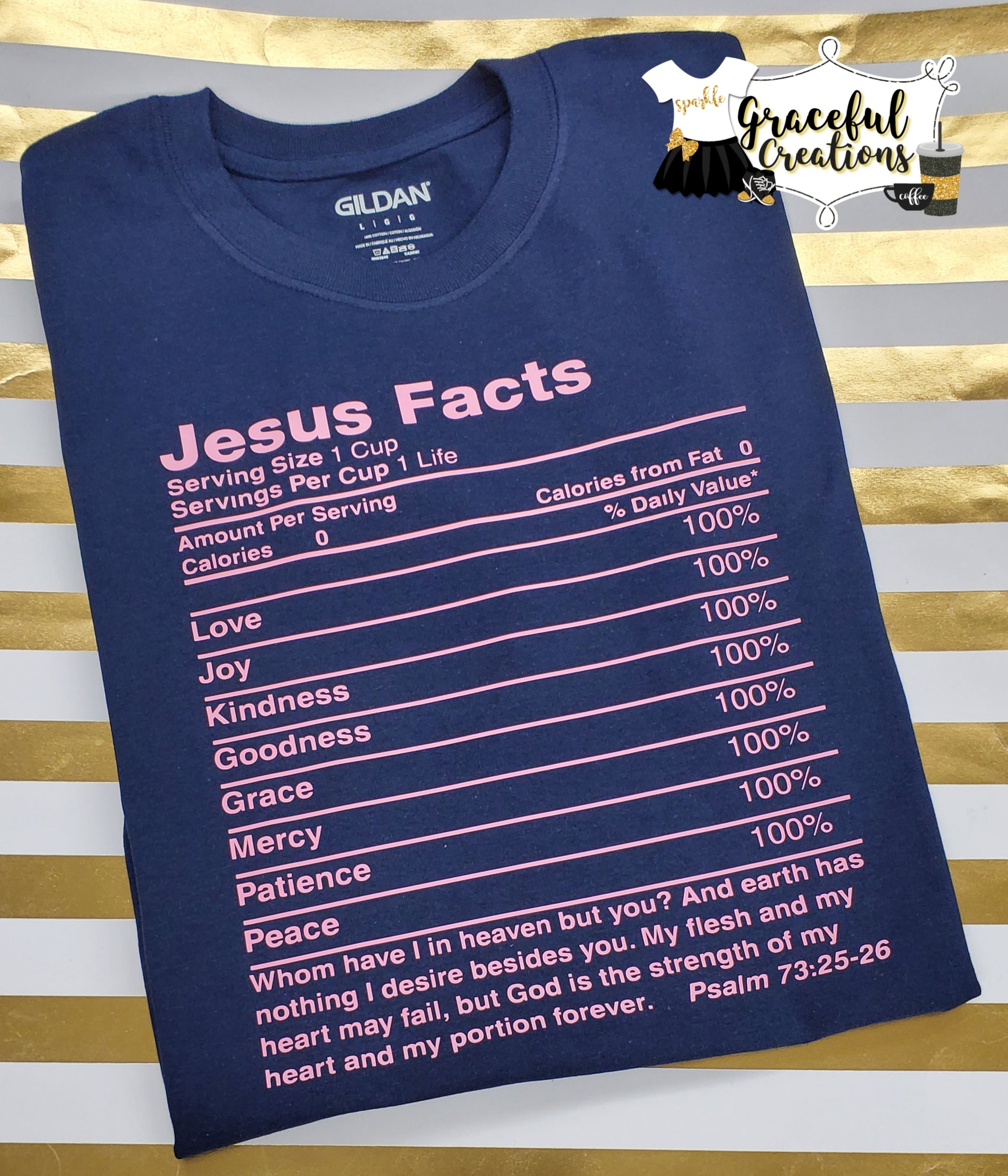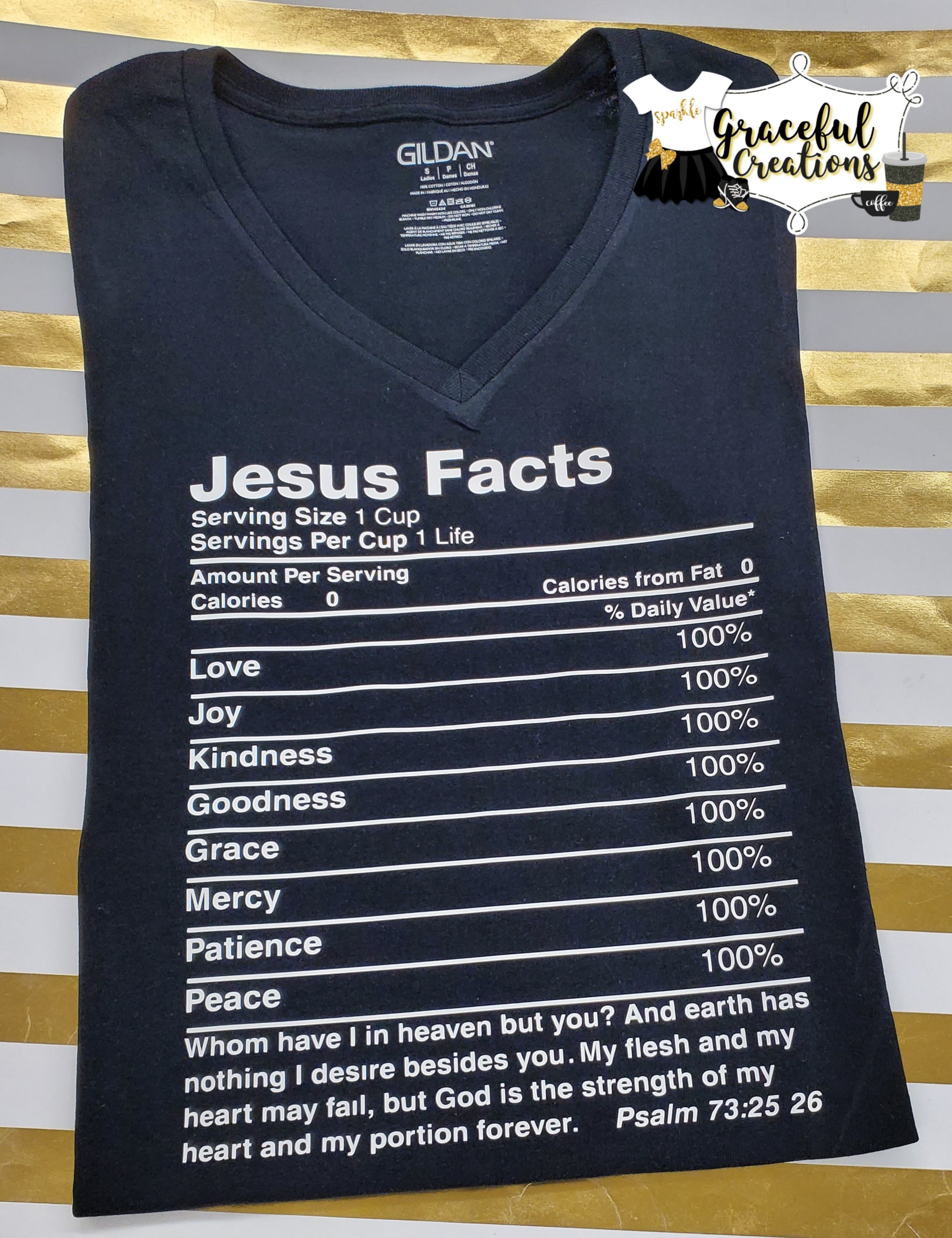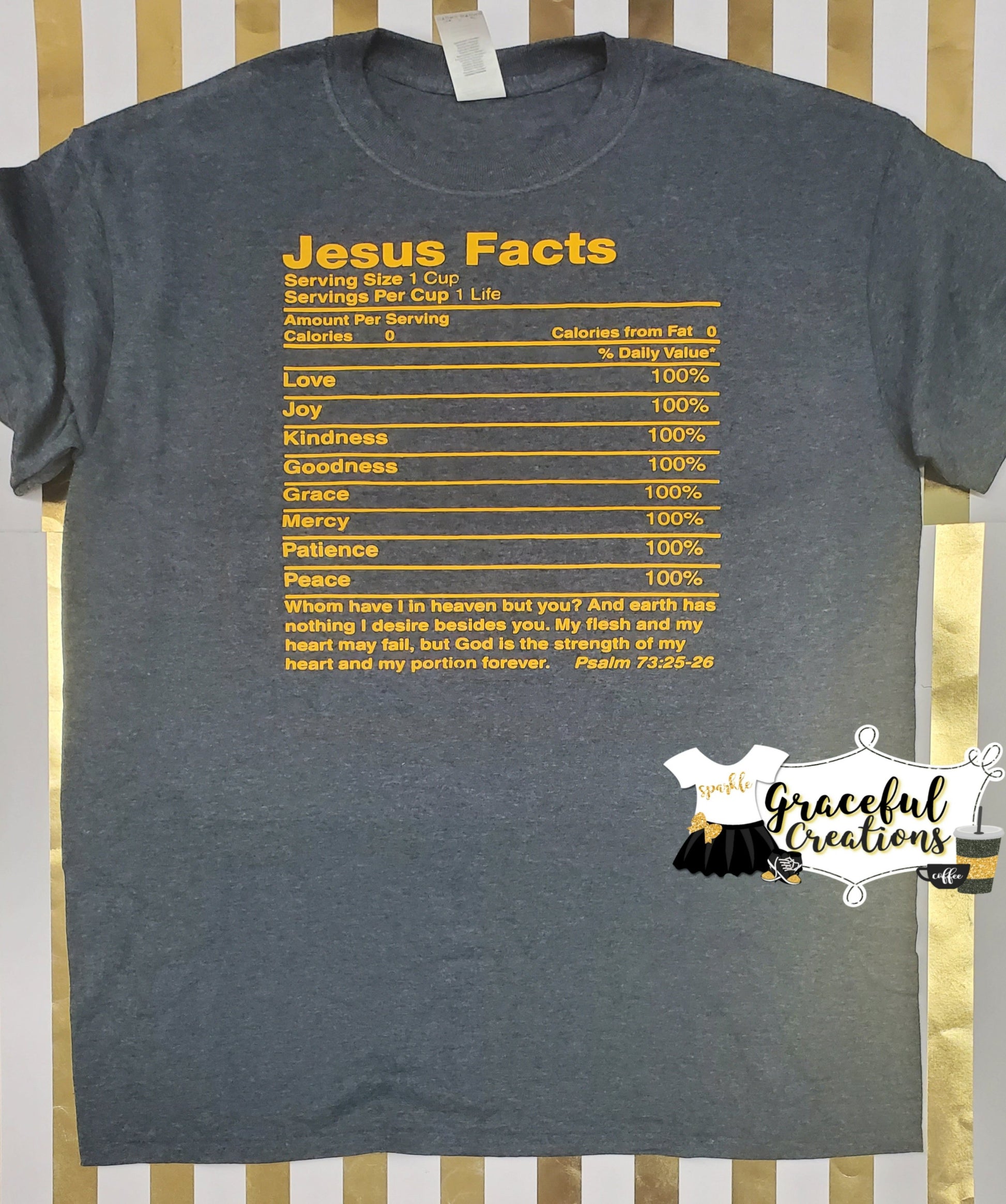 Jesus Facts Personalized Shirt. (This listing is for one Jesus FactsTee shirt.) When placing your order, please specify: 1. Your size (We use unisex tees.) 2. Shirt color 3. Design color choice. All shirts are made to order by myself and my team.