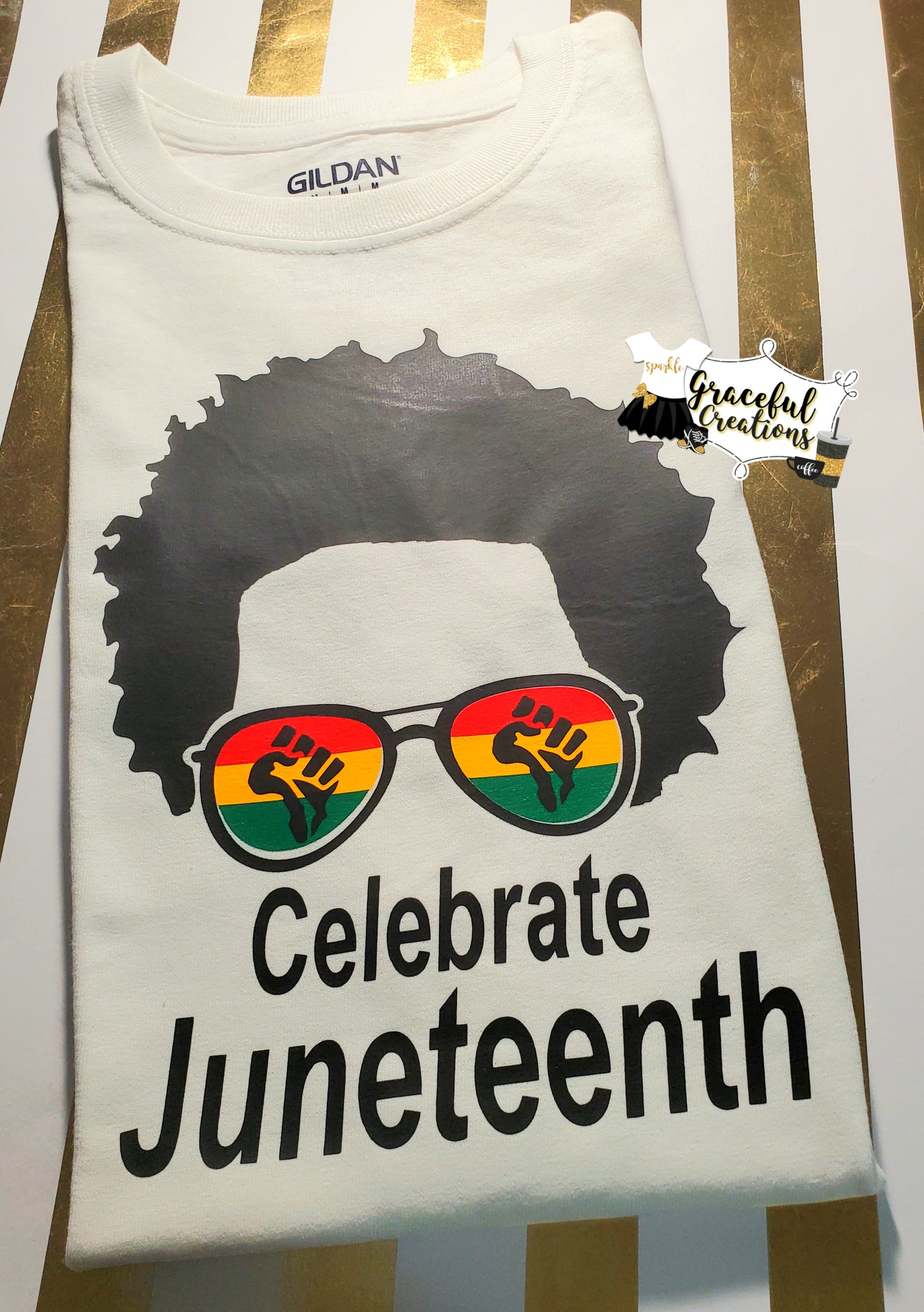 (This listing is for one (1) Juneteenth Boy with Shades Youth regular white tee.) Our tees are made to order by myself and my team.