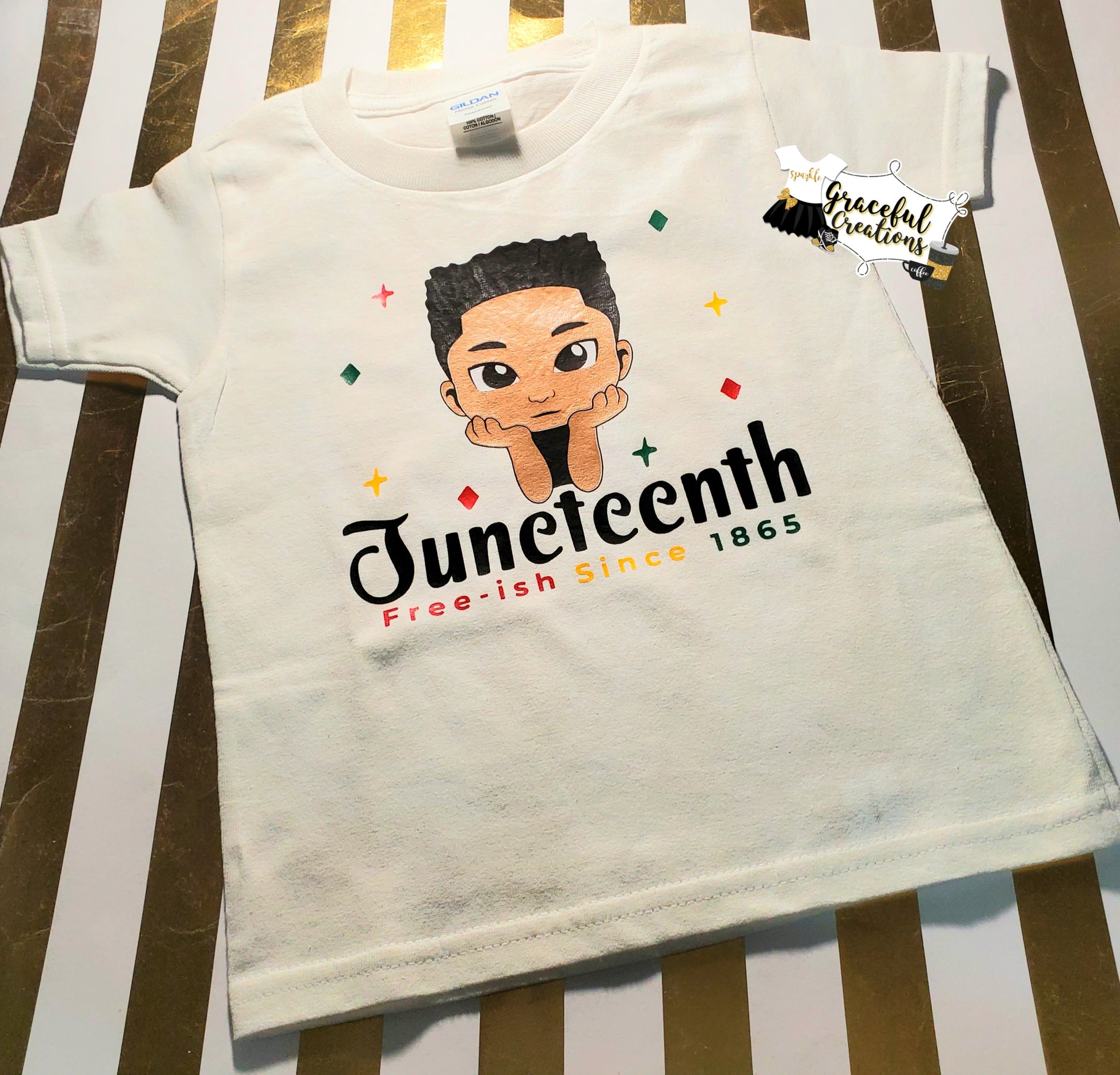 (This listing is for one (1) Juneteenth Little Boy Youth regular white tee.) Our tees are made to order by myself and my team.