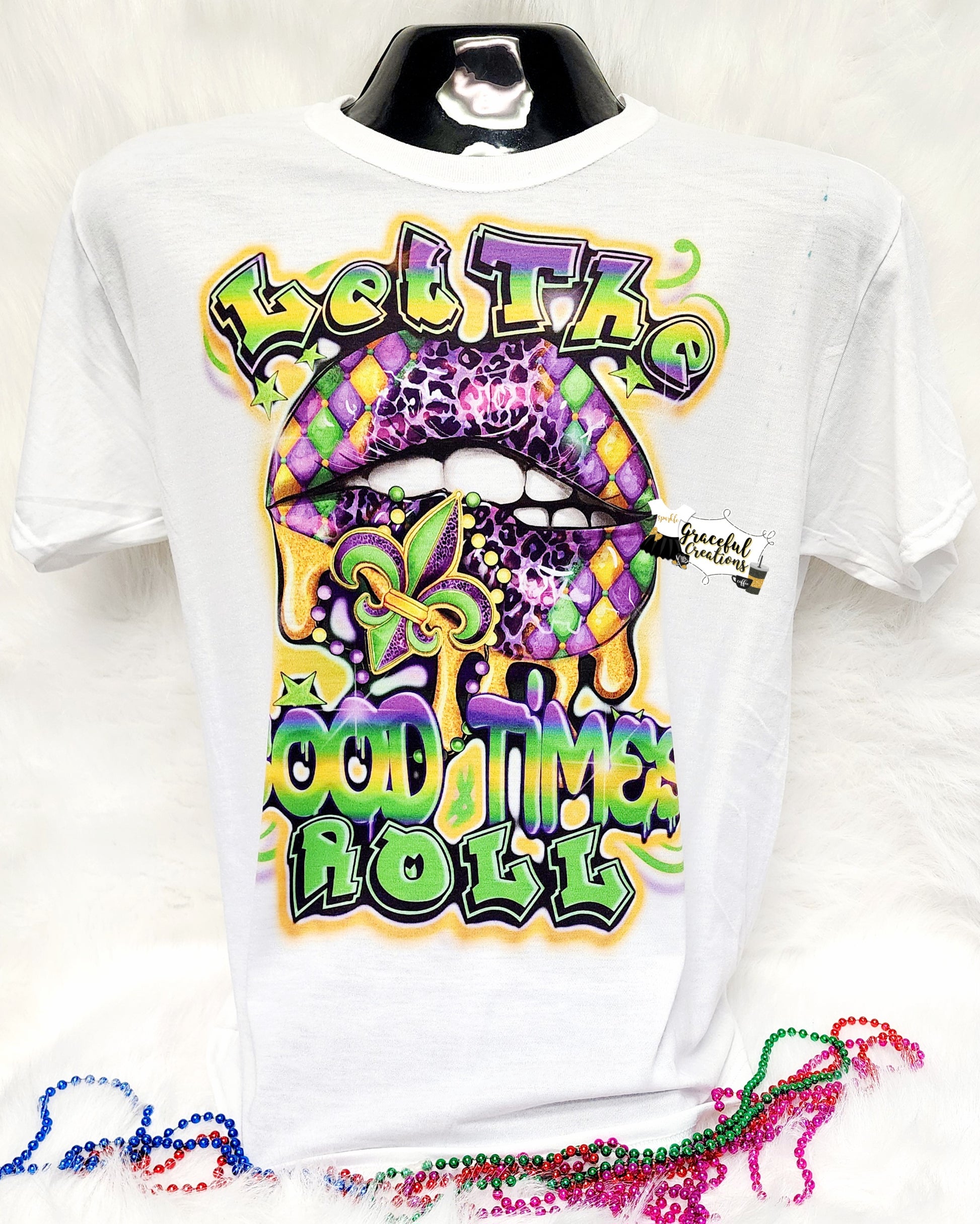 Let The Good Times Roll Airbrush Style Mardi Gras Custom T-Shirt