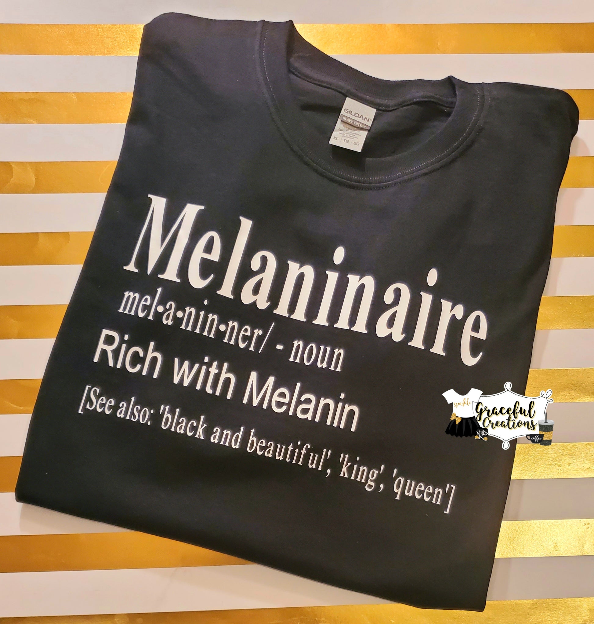 Melaninaire Definition Personalized Shirt. (This listing is for one Melaninaire Definition Tee shirt.) When placing your order, please specify: 1. Your size (We use unisex tees.) 2. Shirt color 3. Design color choice. All shirts are made to order by myself and my team.