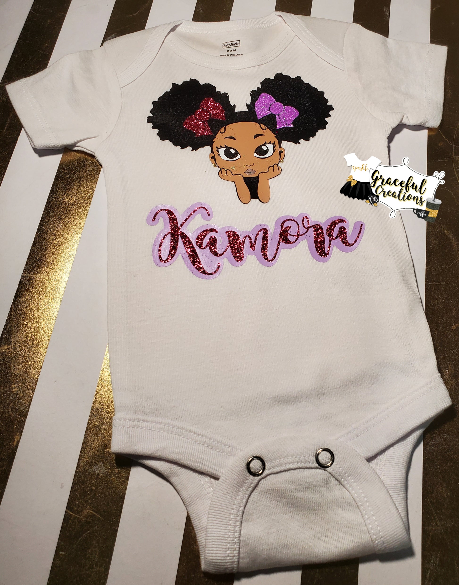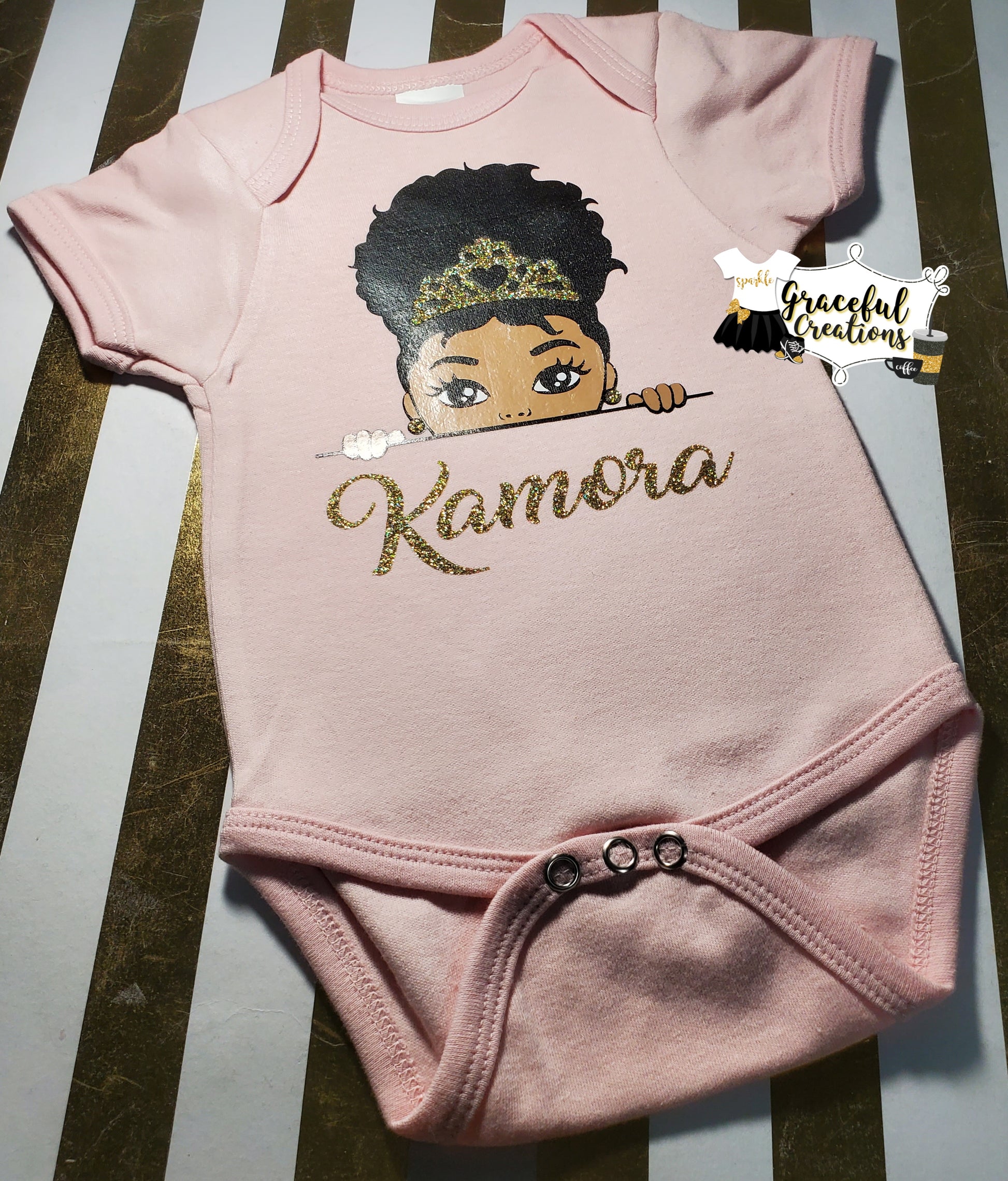 Peekaboo Girl/Boy Infant Creeper. (This listing is for one Personalized Peekaboo Infant Creeper.) When placing your order, please specify: 1. Size (We use unisex tees.) 2. Design color choice (up to 4 colors.) 3. Shirt color. 4. Baby name. All shirts are made to order by myself and my team.