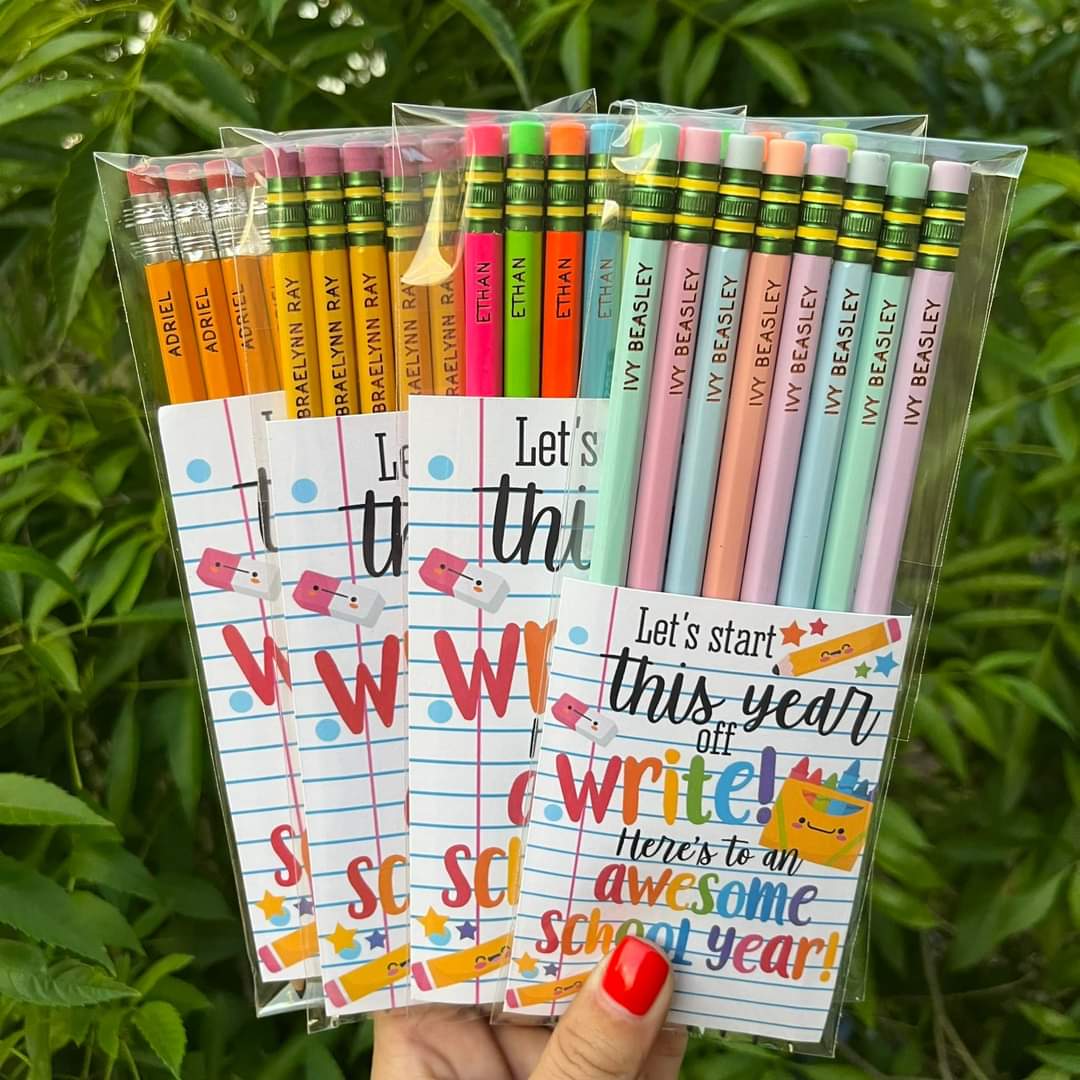 Let's start this year off write!! Send your child(ren) back to school with these custom and personalized pencils! Choose between Pastel Ticonderoga, Neon Ticonderoga, Regular Ticonderoga or the Generic Brand.