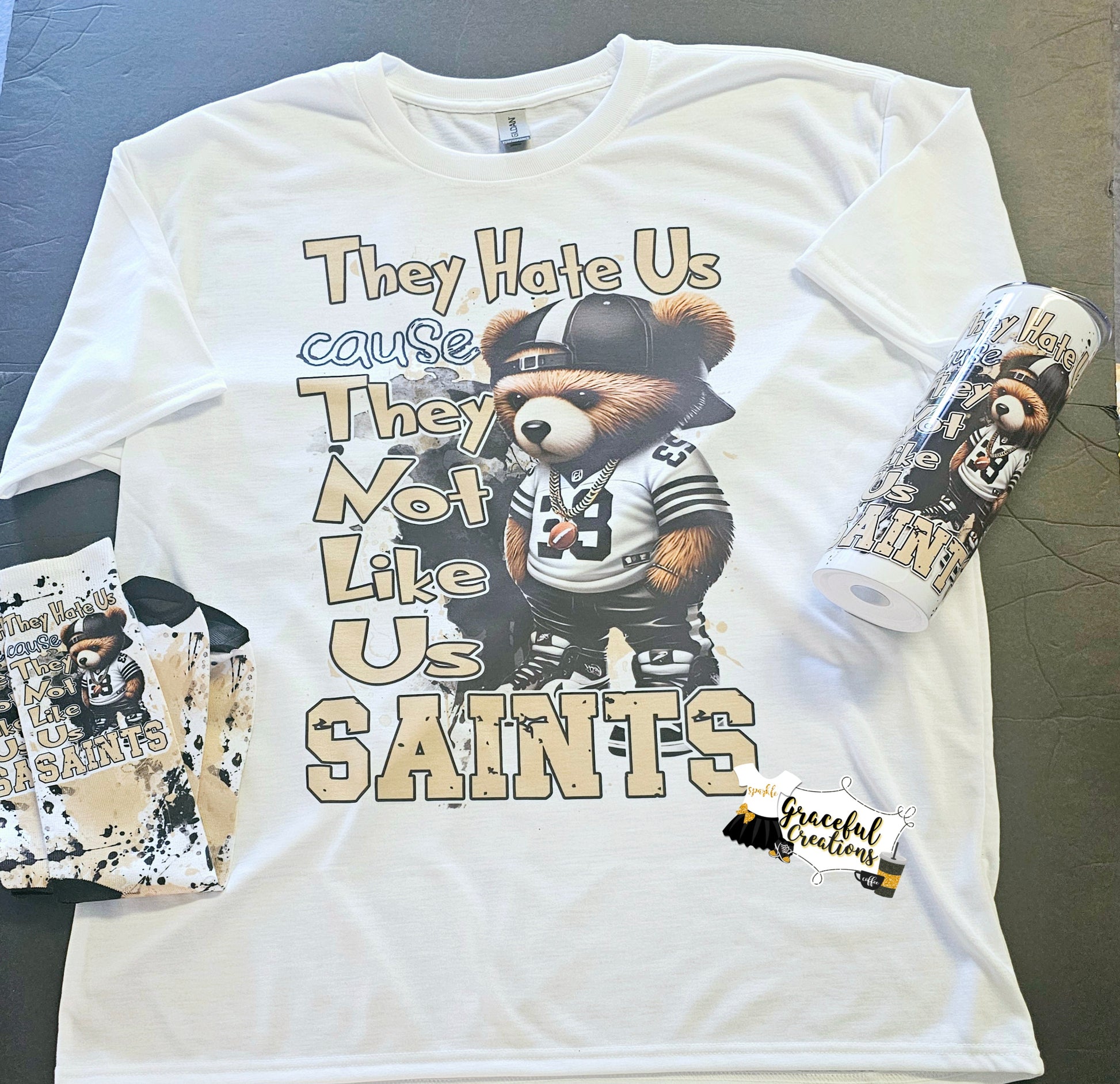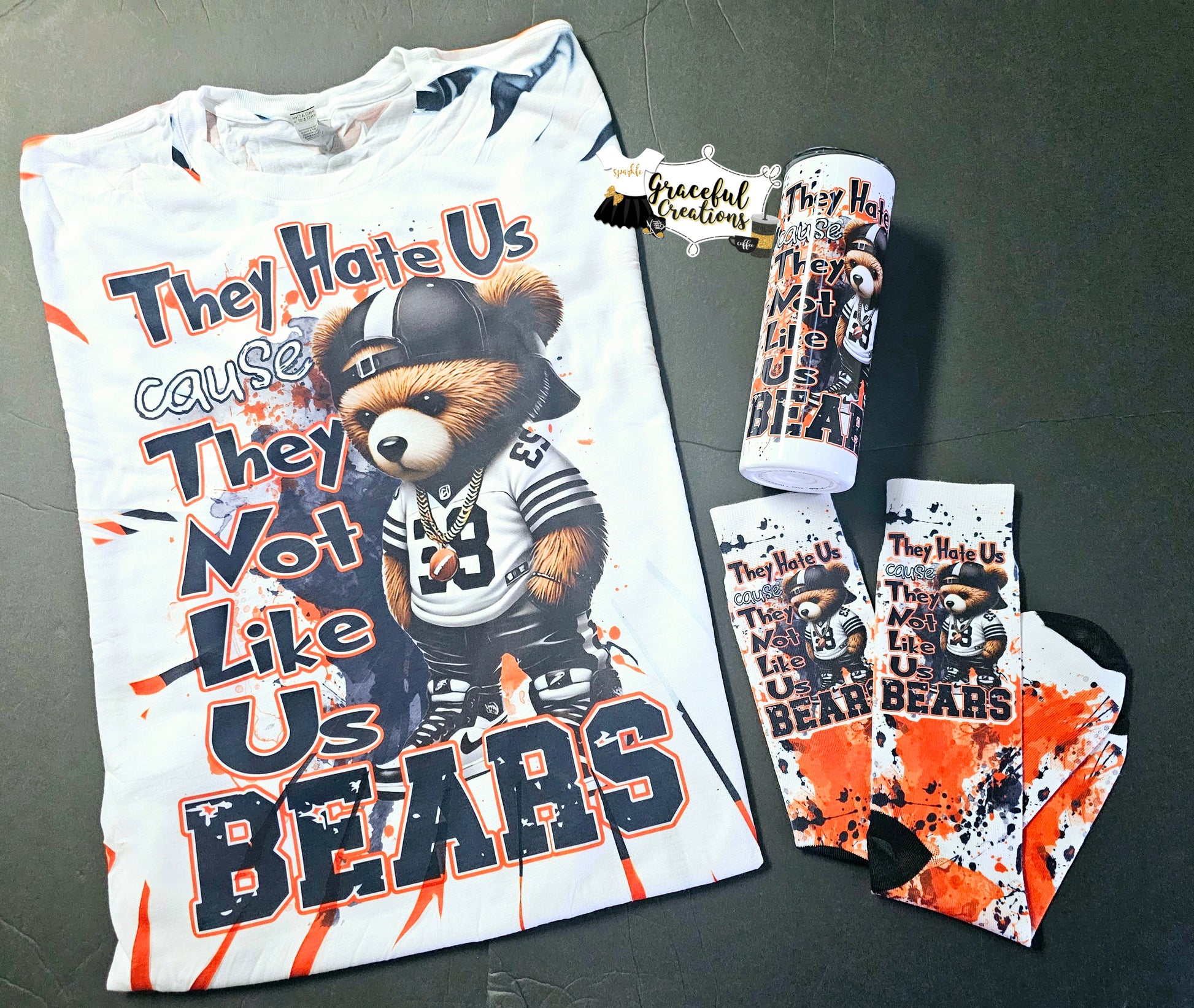 Cheer on your favorite š team with our premium sublimation printed "They Hate Us Cause They Not Like Us Team Tee, Tumbler and Socks Bundle! Show your team spirit with these football fan tees and let everyone know who you support. š„Ā Order one of our They Hate Us Cause They Not Like Us Team Bundles that can be done in any teams' colors.Ā